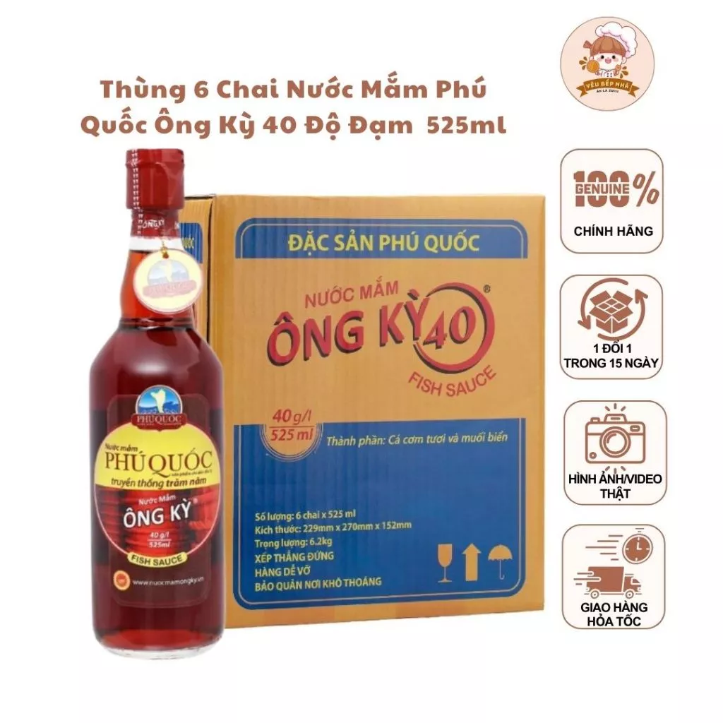 🔥 Nước mắm Ông Kỳ Phú Quốc 40 độ đạm thùng 6 chai x 525ml/chai đang giảm giá!